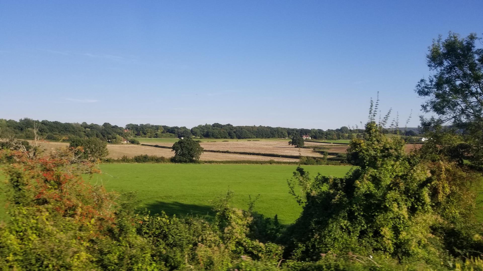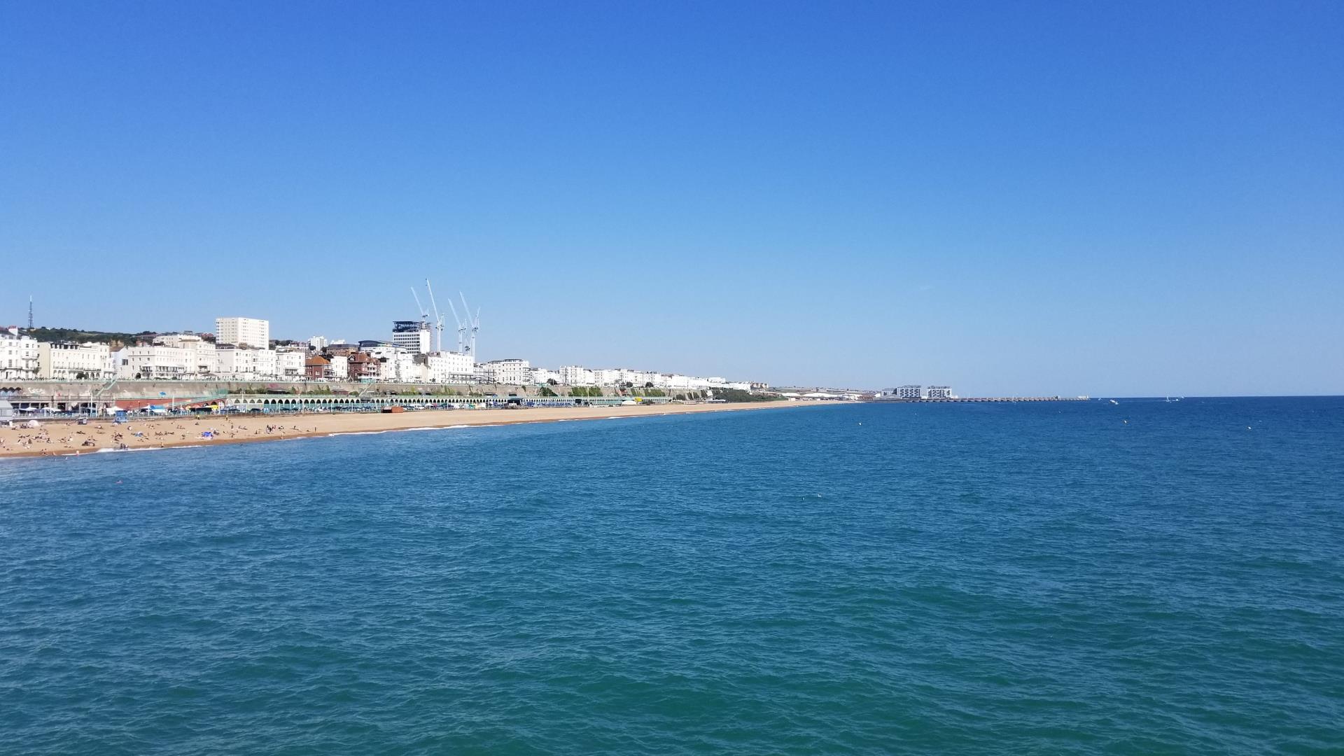 Passed many open fields and towns. We stopped at the Pret A Manger in the station for lunch, then walked to the shore. As we walked we passed lots of shops.