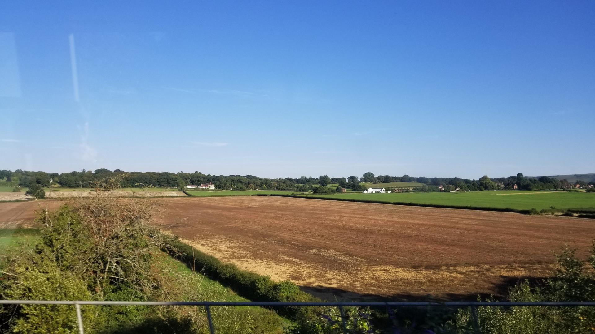 Passed many open fields and towns. We stopped at the Pret A Manger in the station for lunch, then walked to the shore. As we walked we passed lots of shops.